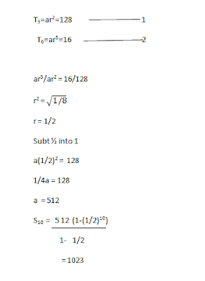 That Tn is a geometric sequence.If the third term ,Tn=128 and the sixth term Tn=16, find the first term, the common ratio and the sum of the first ten terms.